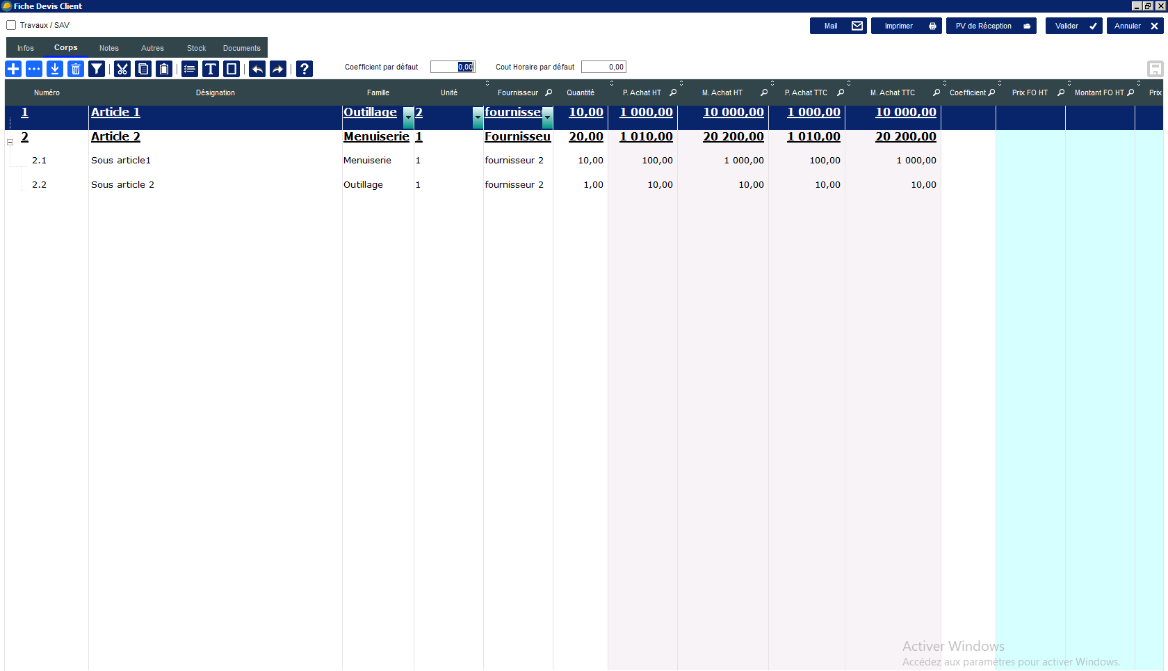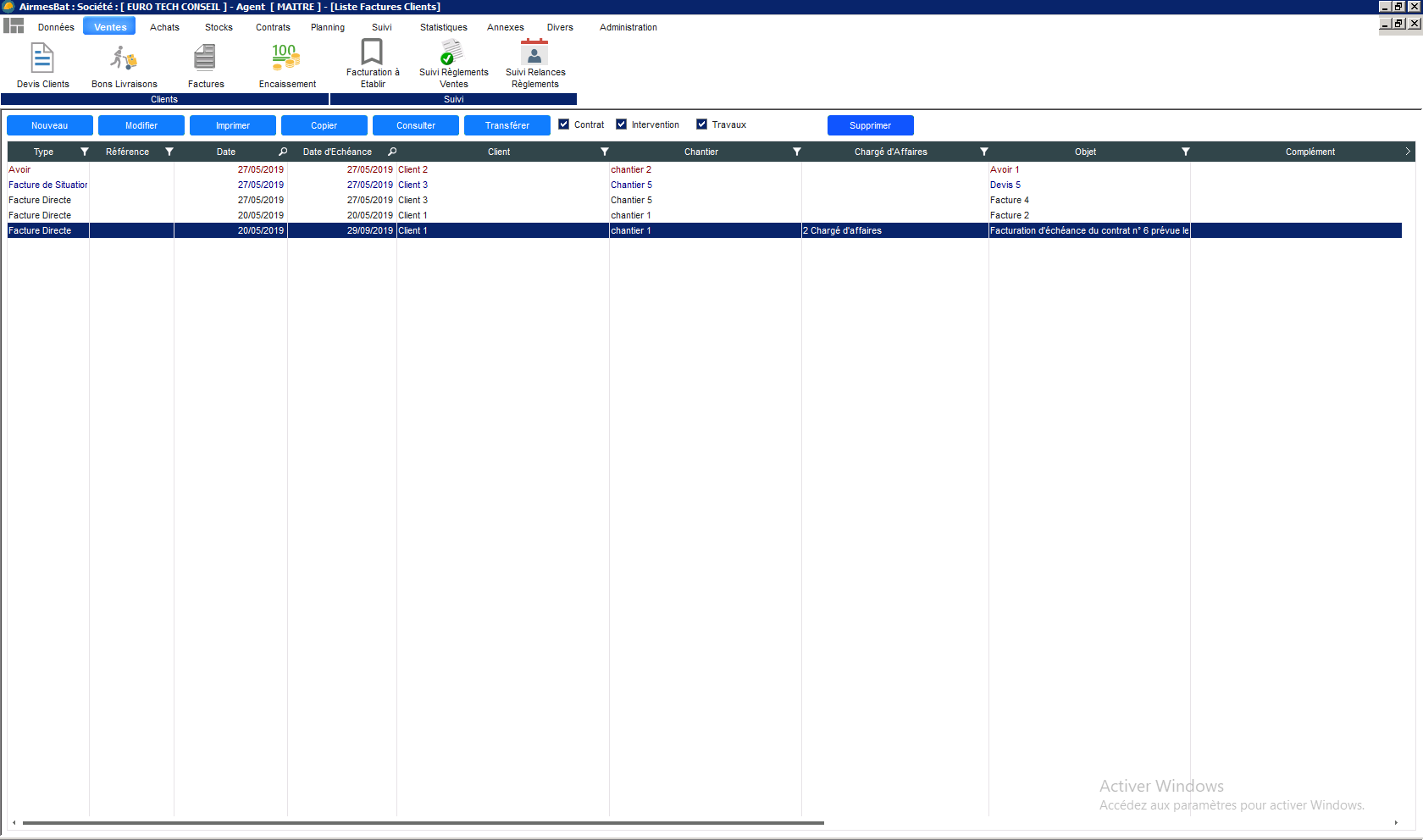 Notre logiciel bâtiment vous donnera la possibilité de gérer à partir d’une seule interface l’ensemble des opérations à effectuer tel que la gestion des ventes, des achats, des interventions ainsi que le suivi détaillé et l’affichage des statistiques afin que vous puissiez observer l’avancement de votre activité.